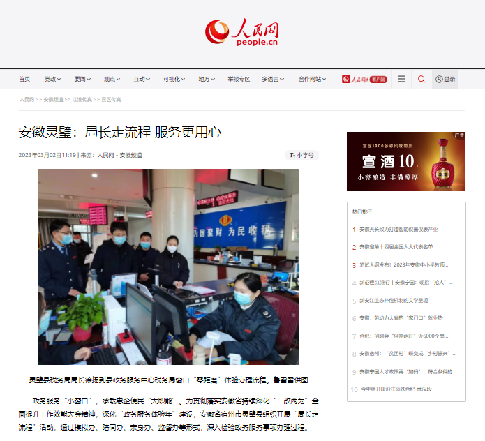 灵璧县税务局局长徐扬到县政务服务中心税务局窗口“零距离”体验办理流程。鲁雪雷供图政务服务“小窗口”,承载惠企便民“大职能”。为贯彻落实安徽省持续深化“一改两为”全面提升工作效能大会精神,深化“政务服务