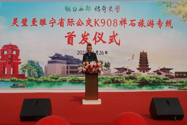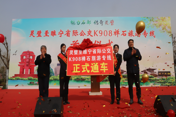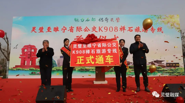 3月26日,灵璧至睢宁省际公交K908禅石旅游专线开通运营。灵璧县人民政府党组成员、副县长人选李健,县政协副主席李景兰参加首发仪式。李健指出:K908禅石旅游公交专线的开通是县委、县政府全心全意为人民