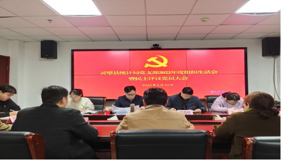 2023年3月22日,灵璧县统计局党支部召开2022年度组织生活会暨民主评议党员大会,会议由支部委员会主持,党组成员以普通党员身份参加会议,带头开展批评和自我批评。会议首先学习了党的二十大报告精神和《