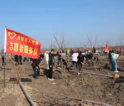 春回大地万物复苏,又到了一年一度的植树节。3月10日,灵璧县人社局组织20余名党员干部参加义务植树活动,用实际行动美化环境,积极践行“绿水青山就是金山银山”的发展理念。植树现场红旗招展,同志们齐心协力