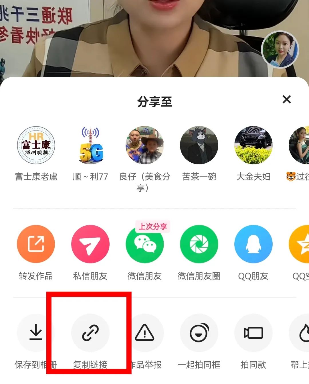 随便打开一个作者去翻她的主页,下载是复制他的链接【选一个视频复制链接】