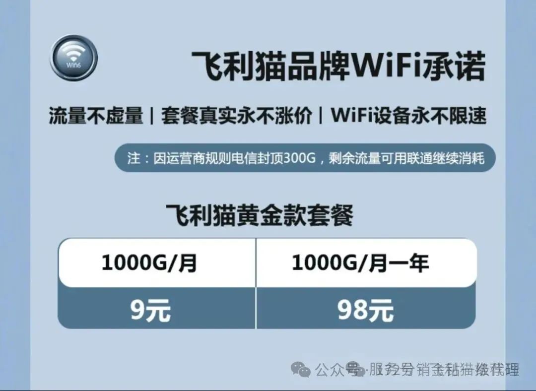 飞利猫综合管理平台是一个不错的随身wifi商城,经过改版后不仅系统更好用,而且发布的产品也是经过重新定版的,其中随身wifi产品不仅流量资费便宜,而且包含的流量还更多,其中的爆款就是9元1000G流量的款了,深受用户的喜欢。