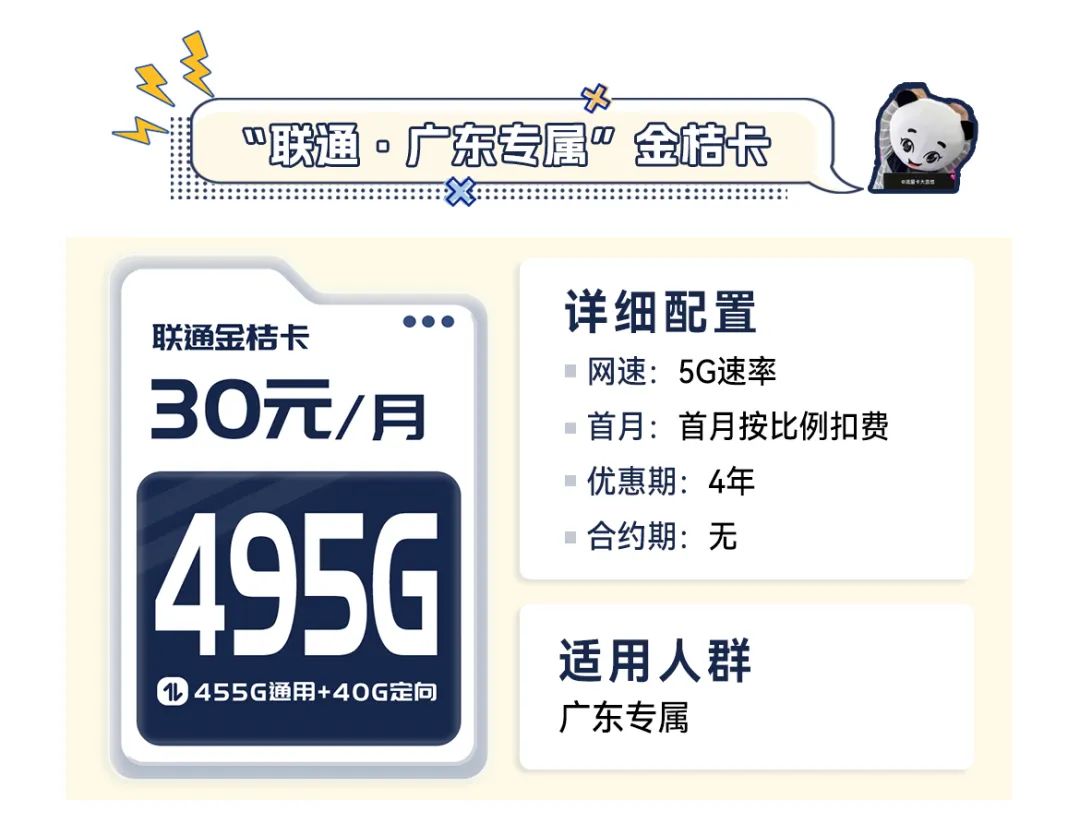联通金桔卡可以说是一款广东专属卡,495G的巨无霸流量,不过,有一点要提醒大家的是,金桔卡只有55G是全国通用的,剩下的440G仅限在广东地区使用,相对来说,会更适合那些长期在广东生活的朋友申请。