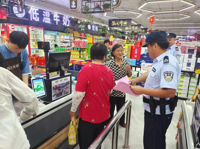 连日来,灵璧县公安局朝阳派出所组织民辅警深入辖区,开展打击整治养老诈骗专项行动宣传活动,守护好老年人的 “钱袋子” 。活动中,社区民辅警深入村居、集贸市场以及健身场所等老年人活动较多的地方,向群众发放