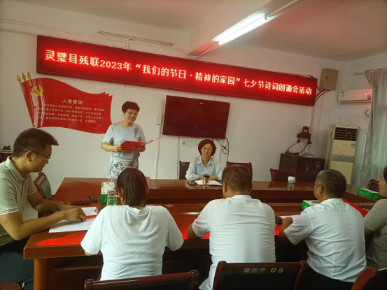 8月21日,灵璧县残联组织全体职工开展“我们的节日——七夕”主题诵读活动,大力弘扬中华优秀传统文化,积极营造和谐的社会风尚。活动中,县残联副理事长李晓梅首先详细介绍了“七夕节”的渊源、传说、习俗,强调