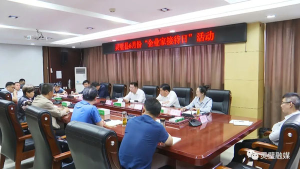 6月6日,县委副书记、县长薛勇出席灵璧县6月份“企业家接待日”活动。县委常委、常务副县长王鹏参加活动。接待现场,灵璧县燃能加油站、闫海加油站、食府大酒店、安徽旭超富硒农业科技股份有限公司、安徽攀望科技