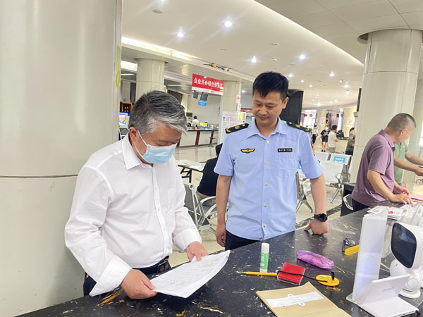 5月17日上午,灵璧县交通运输局局长赵晨阳深入政务服务中心交通局窗口调研指导工作,并慰问坚守一线的工作人员。赵晨阳局长实地查看了交通局窗口运行情况,在听取汇报的基础上,详细询问了业务办理流程、办结时限