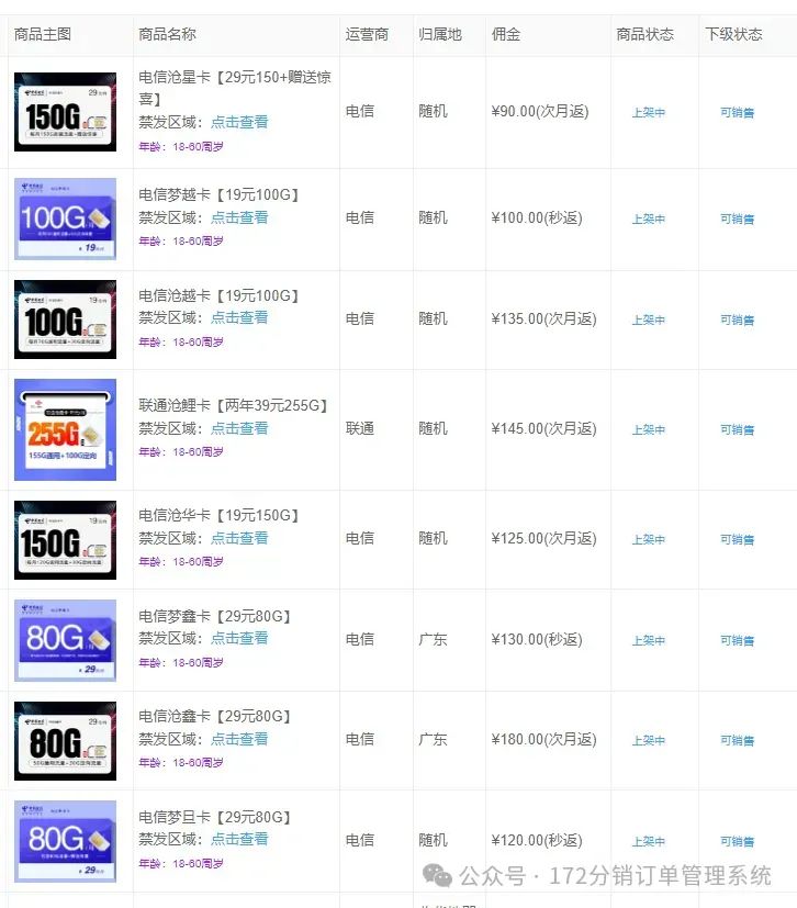 172号卡产品•近期大流量上架汇总注册默认直属一级总代 最高政策达标黑钻以及金钻等级可额外补贴平台订单90%支持追溯补结 结算率全网最高 订单数据真实可查 支持抖音抖店橱窗!快手小店!京东店