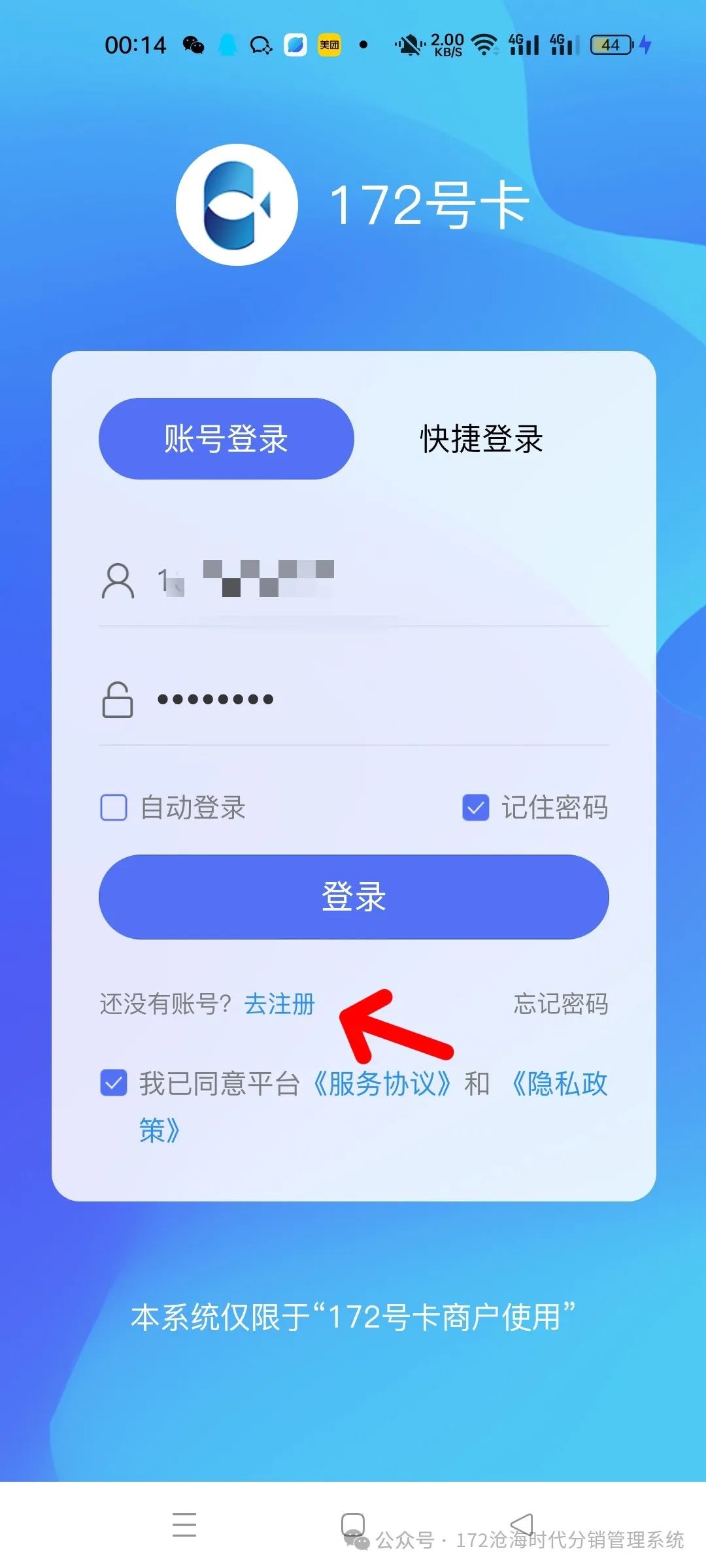点击注册为一级172号卡1.172金钻招募一级注册 2.172app下载地址