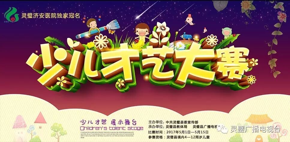 “济安杯”灵璧首届网络电视少儿才艺大赛,由县委宣传部主办,县教体局、县广播电视台承办,灵璧济安医院独家冠名支持。大赛旨在,利用新媒体平台,丰富全县少年儿童校外文化生活,提升全县少年儿童素质教育,促进少儿全面、健康成长。同时展示和检验我县新媒体建设成果,发挥主渠道,弘扬主旋律。由于参赛内容形式不限,歌曲演唱、戏曲表演、舞蹈展示、器乐演奏、小品表演、相声表演、书法、绘画、朗诵、个人脱口秀等均可展示,得到了全县广大少年儿童的积极响应,城乡报名火热。