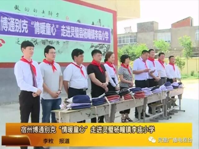 六一儿童节将至,宿州博通别克公司为助力精准扶贫,承担企业社会责任,举办“情暖童心”走进灵璧杨疃镇李庙小学活动,向李庙小学的30名贫困学生捐赠书包等文具,为贫困留守儿童送上了一份温暖和关爱。县政协副主席